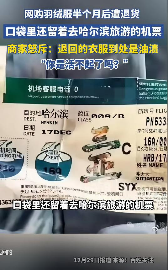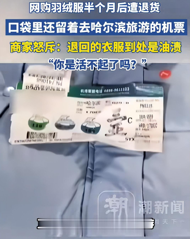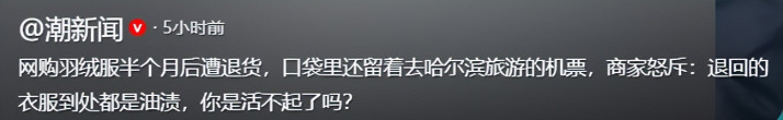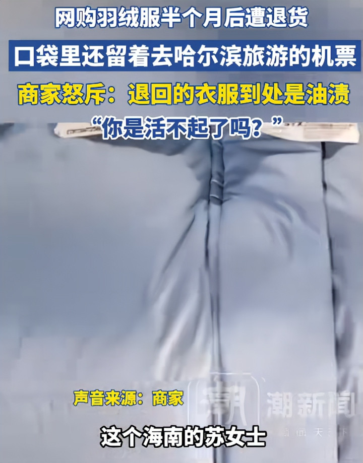 一件633元的羽绒服, 从三亚穿到哈尔滨再退回, 本该是笔普通的网购交易, 可工厂一条视频把它送上热搜,