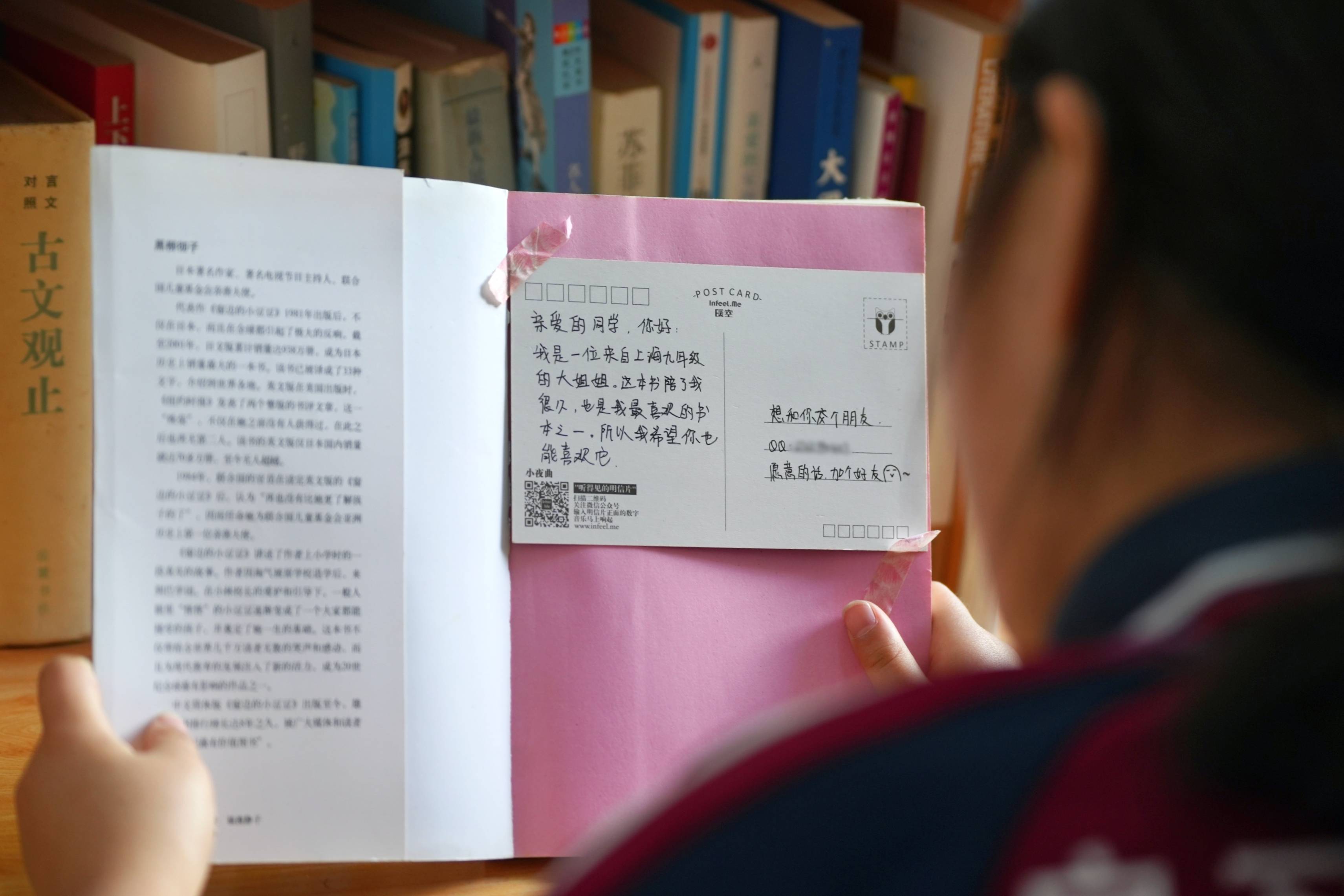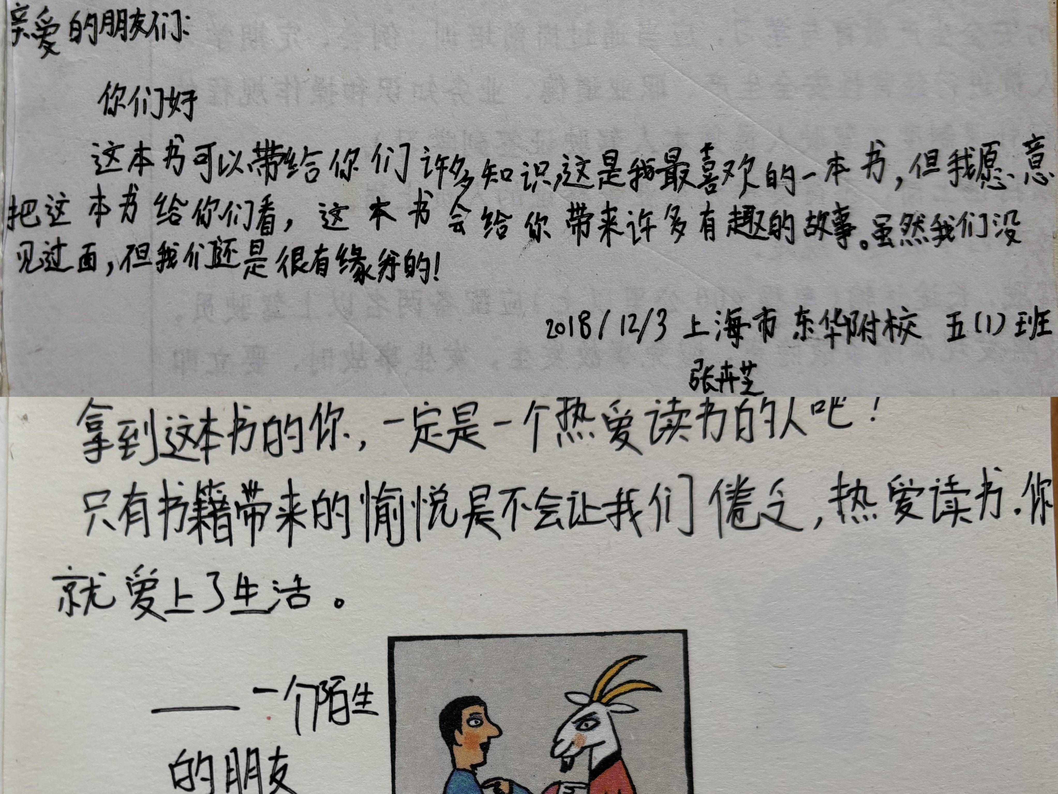 这些从上海寄来的书,被一双双小手反复翻阅,渐渐有了岁月的痕迹。有人会在喜欢的句子下轻轻画一道线;有人读完扉页上的留言,也会写下自己的心里话。