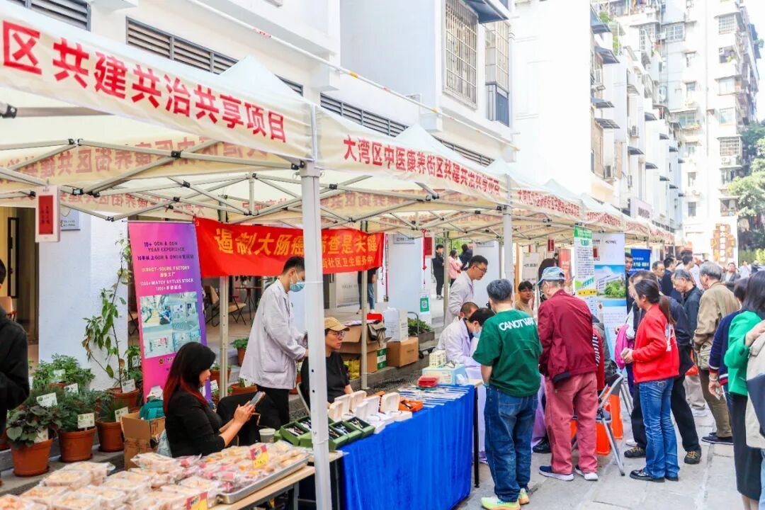 市集现场汇聚了王老吉、保滋堂、奇正藏药、港三元、陈李济、广杏里等15个知名“广货”品牌摊位,以及光塔街社区卫生服务中心为群众提供的中医理疗、义诊与定点服务。