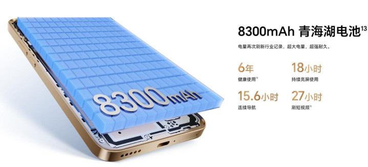 因为8300毫安的电池还是青海湖,讲个道理这块电池绝对不仅仅是数字的压制,或许存在“堆砌参数的嫌疑”,但大环境下还是为了让用户更好用机,而这里的用机在我看来就是“重度电量的焦虑”为主!