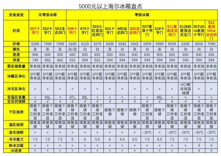 那么,5000元以上海尔高端冰箱哪款性价比高?根据文末的对比表,可以很方便的选出不同价位最具性价比机型,大家根据下面的推荐,按照预算对号入座即可: